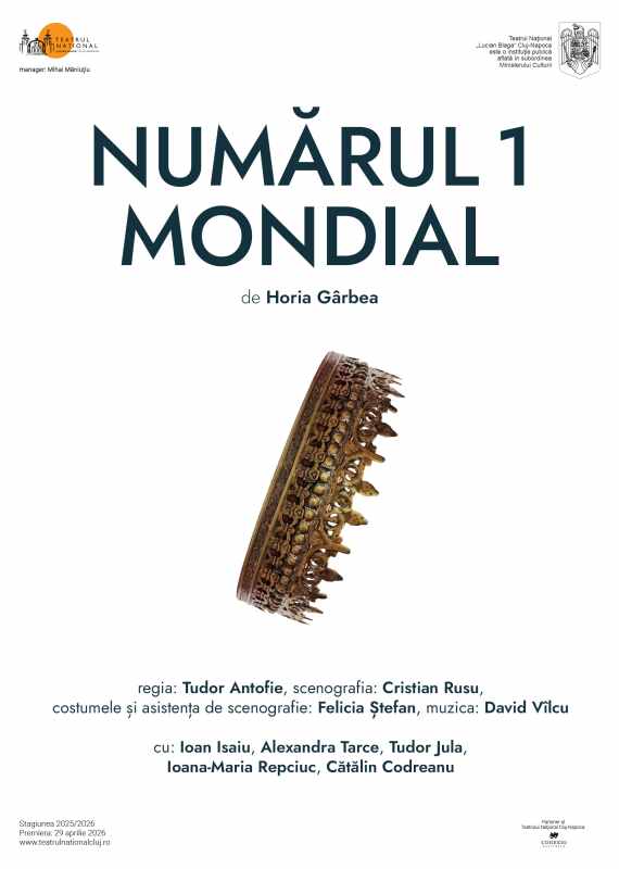 Teatrul Național „Lucian Blaga” din Cluj-Napoca vă invită miercuri, 29 aprilie, de la ora 19:00, în Studioul Euphorion, la premiera Numărul 1 mondial de Horia Gârbea, în regia lui Tudor Antofie, un spectacol care oglindește realitatea distorsionată a celor ce conduc lumea, adesea inconștienți de existența propriilor limite.